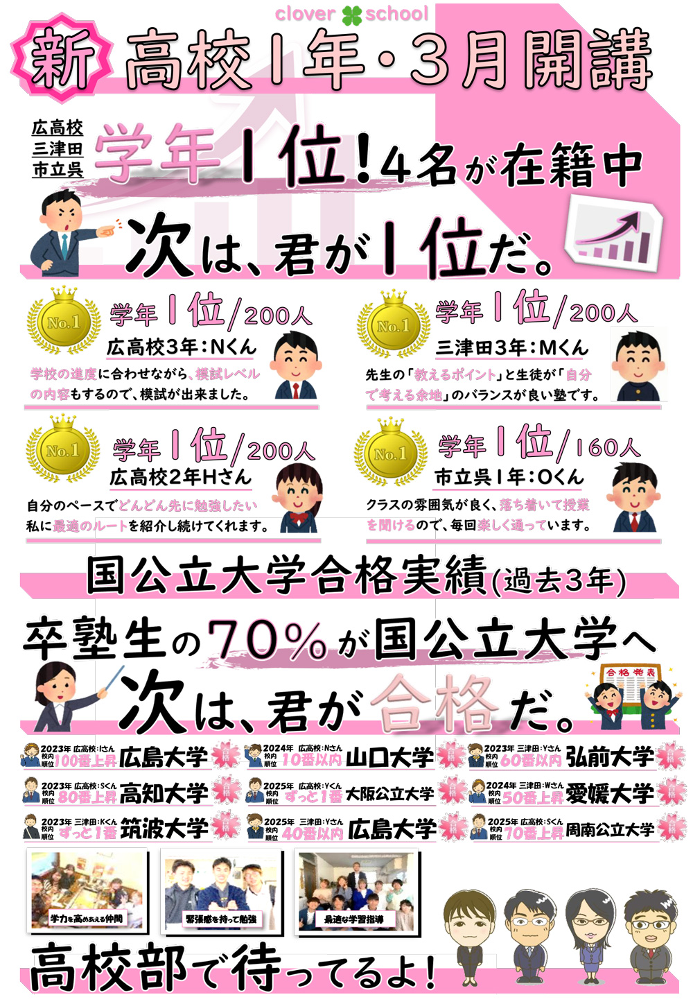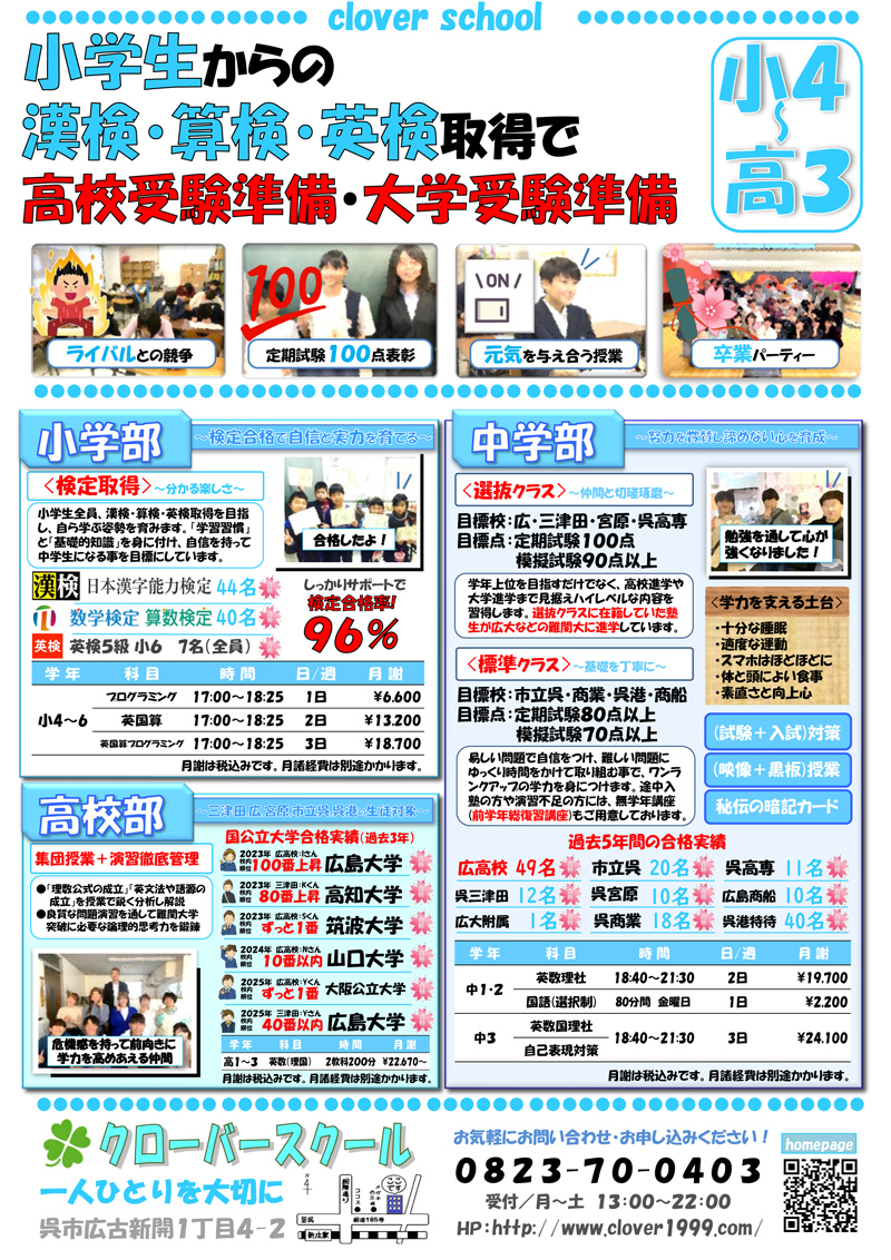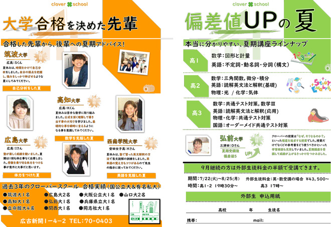 クローバースクールは、一人ひとりを大切にし、それぞれに最も合った指導方法で成績アップをさせてきました。