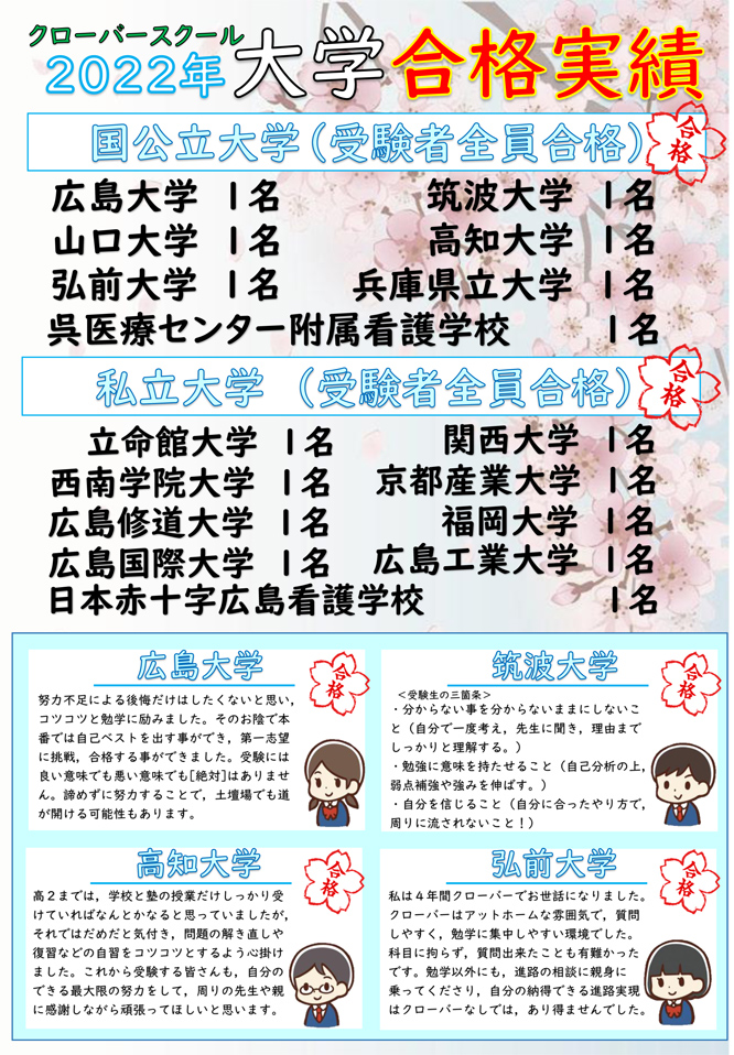 クローバースクールは、一人ひとりを大切にし、それぞれに最も合った指導方法で成績アップをさせてきました。
